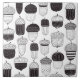 Autumn pattern with various doodled acorns in black and white, vector illustration.