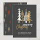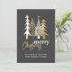 Stylish Company Christmas flat card, done in grey, with doodle art graphics of white and gold Christmas trees, at the top. Personalize the text to read what you want. Great corporate holiday greeting card the employees will appreciate.