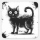 Elevate your space with this artistic featuring a bold, grungy black cat illustration. The cat is drawn with rough, sketchy lines and surrounded by black ink splatters, creating a dynamic, edgy aesthetic. The distressed texture and doodle style give the tile a raw, modern appeal.