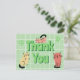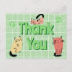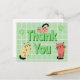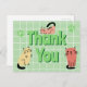 Say Thank You with this adorable postcard. A cool retro style green background with a white grid pattern over the top. In the centre are the words Thank You in green lettering with a dark green drop shadow to make it stand out. To the left, right and on top of the words are cute doodle cats. and green paw prints in the background to finish off the look.