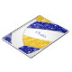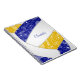 This pretty volleyball themed notebook features the realistic image of an abstractly oversized volleyball that has blue, gold and white panels with delicate hand-drawn doodle flowers, feathers and paislies in white patterned on the volleyball's blue and gold panels - customize with the athlete's name - by katz_d_zynes
