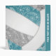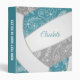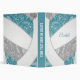 This boho volleyball themed 3 ring binder for her features the abstractly oversized image of a volleyball that has teal, grey and white panels mirrored on the front and back cover - a doodle pattern of paislies, flowers and feathers in white covers the volleyball's teal and grey panels - personalize with the athlete's name - by katz_d_zynes