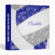 This girly volleyball themed 3 ring binder for her features the abstractly oversized image of a volleyball that has blue, grey and white panels mirrored on the front and back cover - a doodle pattern of paislies, flowers and feathers in white covers the volleyball's blue and grey panels - personalize with the athlete's name - by katz_d_zynes