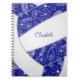 This cute volleyball themed notebook features the realistic image of an abstractly oversized volleyball that has blue and white panels with delicate hand-drawn doodle flowers, feathers and paislies in white patterned on the volleyball's blue panels - customize with the athlete's name - by katz_d_zynes