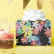 Simple ink-drawn and watercolored flowers pop against a black background. The crazy mix of colours reminds me of a wildflower meadow during the height of summer.