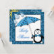 Super cute penguin with blue polka dots bow tie and with a polka dots and stars umbrella with glittery rain coming down but when the bright glittery yellow sun comes out, the umbrella is gone. Poof! Perfect for a boy baby shower.