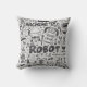 doodle robot element, illustrator line tools drawi throw pillow