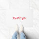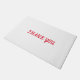24x36 white with red letters... thank you door mat step on your new mat with the bright red . thank you door mat, when people are mean, treat you bad. just say thank you, Dont fight argue,, or get even , thank you