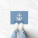 Anchor in white on blue background. Personalize the caption (in black) at bottom with Ship's name, Customize/Edit background to change colour to your choice. ***Part of coordinated set - BKM1d.