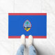 Welcome guests with island pride using our door mat featuring the flag of Guam! This door mat proudly displays Guam's distinctive flag design, which features a dark blue field with a narrow red border and a central red rectangle. Inside the rectangle is a silhouette of a flying proa, a traditional outrigger canoe used by the Chamorro people of Guam, with a blue sky and sea.