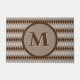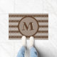 Argyle pattern shows in three shades of brown background colour, in alternating rows of dark, medium and light brown diamonds. Central to the mat is a light brown (beige) circle with the dark brown outline. Centred in the circle is an initial that may be personalized. Letter will show with a drop shadow.