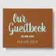 Ce livre d'invités générique contient les messages "Notre livre d'or" et "S'IL VOUS PLAÎT SIGNER", ainsi qu'une date personnalisée. Le texte est de couleur turquoise, et l'arrière - plan est de couleur marron. Un livre d'invité générique et personnalisable comme celui-ci peut être utilisé lors d'un événement tel qu'un baby shower, un mariage, un enterrement ou tout autre événement.