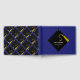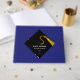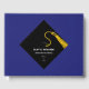 Livre d'or créatif pour inclure des conseils et des voeux de bonne chance mettant en vedette motif casquette noir et or sur arrière - plan bleu. Pour personnaliser le texte de modification pour ajouter le nom du diplômé, l'école et l'année de la classe supérieure.