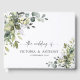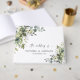 Livre d'hôtes Mariage verdoyant. Cette invitation de mariage élégante et élégante présente de magnifiques aquarelles peintes à la main, une végétation fleurie d'eucalyptus. Trouvez les articles correspondants dans la collection de verdure florale Eucalyptus Aquarelle.