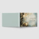 Ethérée enchantée brouillard forestier et arbres avec lanternes suspendues en forme de champignon, dans ce livre d'hôtes mariage, dans les teintes de forêt gris profond, et brouillard. Gris bleu solide sur le dos pour ramasser les couleurs profondes sur le devant.