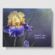Beau livre d'hôtes mariage réalisé dans une couleur d'eau violette, bleue et verte, arrière - plan, avec des graphismes étonnants d'une fleur d'iris violet et jaune. Personnalisez les champs de texte blanc, sur le devant, pour répondre à vos besoins. Des produits mariages Ultra Violet Iris correspondants sont disponibles.