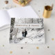 Un couple heureux sur un livre d'hôtes mariage de jour enneigé.