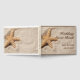 Utilisez ce livre d'invités de mariage de plage customisé comme un merveilleux souvenir de votre mariage. Customisez l'avant, l'arrière et l'arrière avec votre propre photo et texte pour personnaliser le livre pour votre journée spéciale. Le livre d'hôtes présente une photo de closeup d'une étoile de mer au sable blanc. Cette conception est coordonnée avec d'autres modèles de poissons étoilés de la collection.