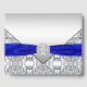 Elégant livre d'hôtes royal bleu et argent avec ruban de diamant bleu royal sur un bel arrière - plan en dentelle d'argent. Ce magnifique livre d'hôtes de couleur bleue royale est facilement customisé pour votre événement en ajoutant simplement vos détails dans le style de police de votre choix.