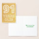 Le recto de cette carte de voeux en or à thème d'anniversaire, audacieuse et attrayante, affiche le message "91 ans !". L'intérieur est doté d'un message d'anniversaire personnalisé. Une carte de voeux comme celle-ci pourrait être une façon spéciale de commémorer le quatre-vingt-dix-premier anniversaire de quelqu’un. [~Z0000400]
