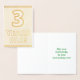 La façade de cette carte de voeux en or accrocheuse, énergique et audacieuse à thème d'anniversaire comporte le message "3 ANS !". L'intérieur est doté d'un message d'anniversaire personnalisé. Une carte de voeux d'anniversaire comme celle-ci pourrait être une façon spéciale d'envoyer un message d'anniversaire à quelqu'un qui célèbre son 3e anniversaire. [~Z0000360]