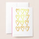 Jolie carte en feuille d'or (ou feuille d'argent) avec un intérieur rose chaud (vous pouvez changer cette couleur en cliquant sur "personnaliser". Conçu avec un motif de coeur brossé à l'avant, dos en feuille d'or ou en feuille d'argent. À l'intérieur de la carte est un arrière - plan rose chaud que vous pouvez changer à une autre couleur si vous préférez en cliquant sur personnaliser, avec le même motif de coeur en blanc et un endroit pour votre message customisé (ou supprimer les mots pour laisser l'intérieur vide). Parfait pour cette personne spéciale le jour de la Saint-Valentin !