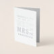Félicitations à la nouvelle Mme & Mme carte de mariage en typographie avec véritable feuille métallisée. Avec un espace pour personnaliser à l'intérieur, changez la couleur pour correspondre aux couleurs du mariage ou à la décoration intérieure du couple heureux. Avec sa belle finition véritable feuille métallisée, la carte elle-même est un cadeau qui vaut la peine d'être encadré. Fait partie d'une collection coordonnée.