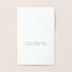 Cette carte de voeux élégante offre une façon réfléchie d'express votre gratitude, que ce soit pour un geste gentil, des mots réfléchis, ou un cadeau spécial. L'avant est ornée des mots "Merci" en feuille dorée chatoyante, ajoutant une touche de sophistication à votre message. À l'intérieur est une citation imprimée de votre choix au-dessus de l'espace suffisant pour écrire une note sincère. Cette carte vous permet de transmettre votre appréciation avec sincérité et style, parfait pour toute occasion.