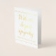Cette carte de voeux personnalisée et élégante en feuille d'or de conception sympathique comporte le message "Avec notre plus profonde sympathie" sur le devant, ainsi qu'un message customisé à l'intérieur. Une carte comme celle-ci pourrait peut-être être utilisée pour présenter ses condoléances aux proches de quelqu'un qui est récemment décédé.