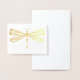 Une élégante libellule esquissée à la main, rendue dans une feuille brillante, orne une carte très spéciale pour vous permettre de composer votre message de coeur.