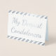 Cette carte de voeux simple et personnalisée en feuille d'argent comprend le message "Mes condoléances les plus profondes" sur le devant, ainsi qu'un message personnalisable à l'intérieur. Une carte comme celle-ci pourrait peut-être être utilisée pour présenter ses condoléances aux proches de quelqu'un qui est récemment décédé.