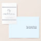 Cette carte de voeux personnalisable en feuille d'argent comprend le message "Mes condoléances..." sur le devant, ainsi qu'un message personnalisé à l'intérieur. On pourrait peut-être s'en servir pour offrir de la sympathie à quelqu'un qui a souffert de malchance.