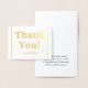 Cette carte de remerciement en feuille d'or customisée comporte le message "Merci !" sur le devant, ainsi qu'un message personnalisable à l'intérieur. Il pourrait être utilisé pour témoigner de l'appréciation à quelqu'un qui a assisté à un mariage, à des funérailles, à un diplôme ou à un autre événement.
