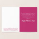 Une carte moderne et chic en feuille d'or pour la fête des mères. À l'intérieur des caractéristiques comprennent Matthew 5:16 et un merci à maman pour tout ce qu'elle a fait.