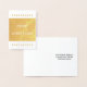Cette carte de voeux de Noël personnalisable et élégante en feuille d'or présente le message "MERRY CHRISTMAS!" sur le devant, ainsi qu'un message personnalisable à l'intérieur. Il présente également des formes étoiles décoratives. Il pourrait être envoyé à des amis et à la famille pendant la période de Noël.