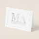 Une carte de graduation en feuille d'argent pour ceux qui ont obtenu une maîtrise en art. Le recto de la carte dit : "MA Félicitations pour la réalisation de vos Maîtres". Dans le message dit "Félicitations". Pour modifier le message, cliquez sur personnaliser. Une façon élégante de féliciter un ami ou un membre de la famille, comme un fils, une fille ou un petit-enfant pour leur diplôme.