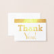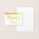 Dites Merci en Or (ou Argent) Foil en 2 types de Typographie. Le Salutation Merci est sur le devant de la Carte, l'intérieur est vide pour votre Message spécial de Merci. Le dos de la carte est conçu avec des bandes Foil de taille variable.