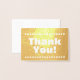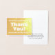Ce design de carte de remerciement comporte le message "Merci !" sur le devant en papier doré, ainsi qu'un message personnalisable à l'intérieur. Il présente également des formes carrés décoratives. Il pourrait être utilisé pour offrir grâce à quelqu'un qui a fait une action spéciale.