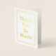 Cette carte de remerciement en feuille d'or propre comporte le message "Merci So Much!" sur le devant, ainsi qu'un message personnalisé à l'intérieur. On pourrait l'utiliser pour témoigner sa gratitude à quelqu'un qui a fait une action spéciale.