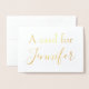 Une belle carte en feuille d'or, ce design affiche le texte exemple suivant, "Une carte pour Jennifer". À l'intérieur, un espace vierge vous permet de laisser un mot manuscrit, un texte dactylographié, des photos, etc. Personnalisez votre carte dès aujourd'hui !