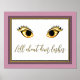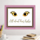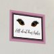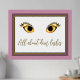 Impression de papier de mode avec un ensemble de cils glamour sur un arrière - plan blanc, avec cadre de papier doré et cadre mat rose poussiéreux autour de l'extérieur. Le texte de feuille d'or lit Tout sur les cils dem, et peut être personnalisé pour lire ce que vous voulez.