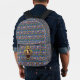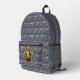 L'oeuvre originale de ZoeSPEAK sur ce sac à dos présente un portrait de l'auteur William Shakespeare. Le portrait est dans un cadre en or ovale avec des rubans et une couronne sur le dessus. Le papier peint arrière - plan bleu est orné de châteaux, de couronnes de rois et de fleurs jaunes et rouges, rappelant l'romantisme, la tragédie et la comédie de ses pièces de théâtre et de poésie.