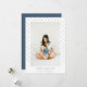 Blue watercolor dotted frame, Happy Hanukkah Holiday photo card. Features, single photo on front and two photo template spaces on back of card with coordinating blue colour background.