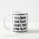 Funny slogan on a Coffee mug that says "I'm a Double Bass Player. What's YOUR super talent?". Coffee Mug for a Double Bass Player or someone who plays the Double Bass. Black and white bold text.
