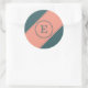 Seal the mail or other item with this round sticker featuring a centered geometric double circle in teal over a pale salmon background. Personalize the text field with an initial letter or click customize to select a font color, size, and style your prefer.