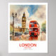 This watercolor design showcases a red double-decker bus driving by Big Ben and the Houses of Parliament on a sunny day in London, England. Let yourself get whisked away to the UK with this breath-taking view of one of the city's most iconic sights.