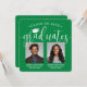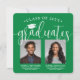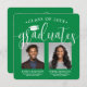 It's a double graduation party! Announce the achievement of two graduates and invite family and friends to celebrate with stylish joint graduation party square photo invitations. All pictures and wording are simple to personalize, and the colours can be customized using the Zazzle design tool. (IMAGE PLACEMENT TIP: An easy way to position a photo exactly how you want is to crop it before uploading to the Zazzle website.) This template is a combination announcement card on the front with the grad party invitation on the back. The modern green and white design features handwritten style script calligraphy with a mortar board cap, elegant classic typography, and 2 photos of your choice, such as senior pictures or images from the commencement ceremony. This graduation invitation card is a stylish way to announce a special day celebration for any two grads, such as siblings, best friends, cousins, twins, brother and sister, etc. Congratulations to both of the graduates!
