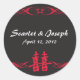 Having an Asian theme wedding? This design is perfect for you. With the Chinese word "double happiness" on it. This custom stickers will look great on your favour boxes and bags.