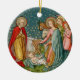 You have several options here: 1) Leave the ornament as is with the same image on both sides. 2) Hide or delete the featured image on the back to reveal our suggested text which quotes the last two lines of the first stanza of that much-beloved late nineteenth-century carol Away in a Manger. Our text may, of course, be replaced with a greeting, a Biblical passage, or any other text of your choosing. 3) Delete or hide both the featured image and the suggested text to reveal a solid colored field ready to receive your own design. To choose a new background color, see the suggested coordinating hues on the Color Palette postcard for this image. + Image Credit (VVP 003): Antique image of the Third Joyful Mystery: The Nativity of Our Lord from a late 19th-century chromolithographic devotional print originally published by K. van de Vyvere-Petyt, Bruges, Belgium, from the designer’s private collection of religious ephemera. The image is third in a formally unnumbered series of the rosary's original fifteen Mysteries.