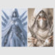 Two Images of Woman Warrior dressed in White for decoupage tissue papers and crafting. While these were created with commercially licensed AI - they have also been heavily edited to bring you a unique design for your crafting needs. They were originally uploaded as 17x23, so each image will be approximately 8.5 by 11. You can downscale them and choose another size that may better fit your needs - however, it may alter the image slightly. Best practice is over white background